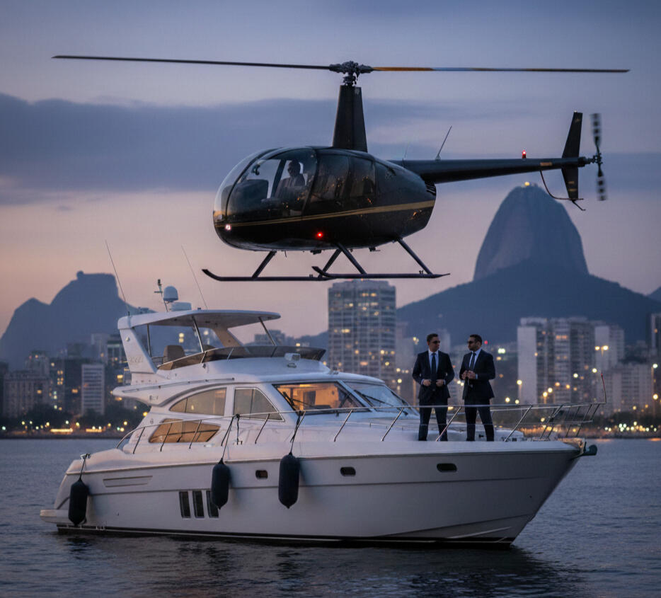 Soluções exclusivas para deslocamentos rápidos e privativos via helicópteros ou embarcações. Ideal para quem busca agilidade e segurança em eventos ou lazer, com logística coordenada para garantir conforto e total discrição em todo o trajeto.